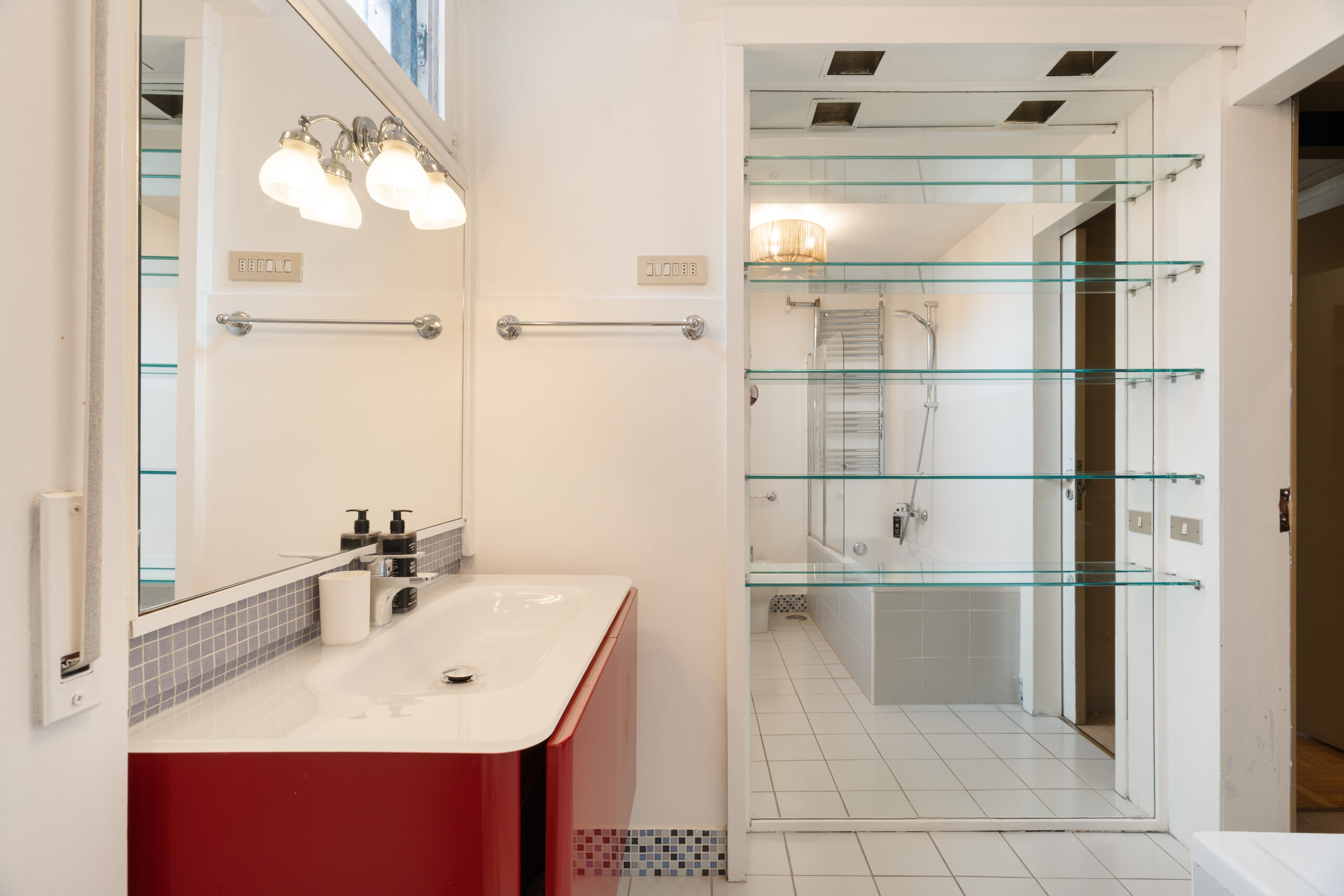 L’appartamento offre ambienti ampi e ben distribuiti: un luminoso living con zona pranzo, una cucina completamente attrezzata, tre camere matrimoniali, cabina armadio e numerose armadiature. I tre bagni completi garantiscono comfort e privacy per tutti gli ospiti.